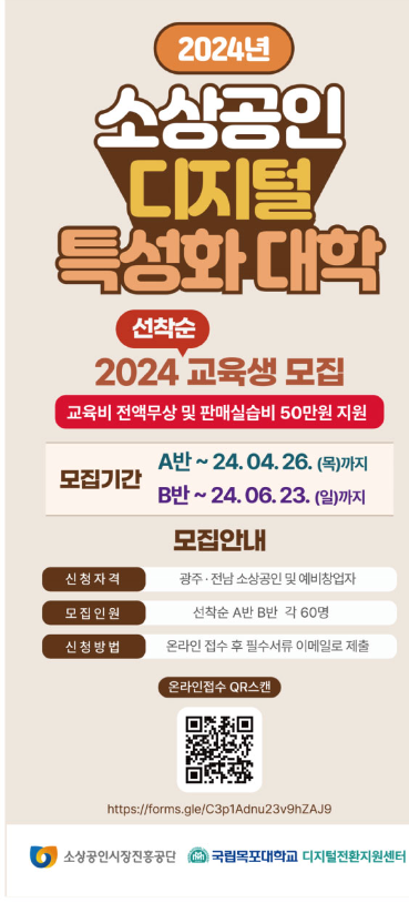 국립목포대 디지털전환지원센터장 이석인 교수는 “국립목포대는 2년 연속 최우수대학으로 선정되었다”라며 “올해에는 소상공인 온라인 판로 개척뿐만 아니라 데이터 활용 능력 향상을 위해 노력하겠다”고 말했다.