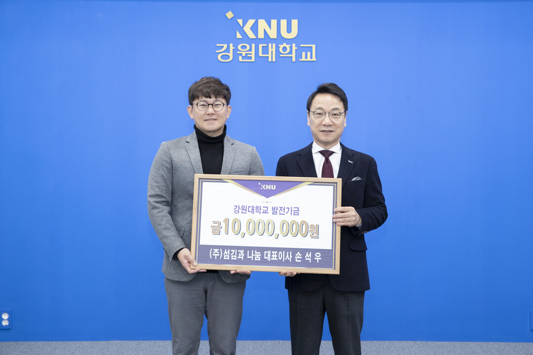 [대학저널 김진수 기자] 강원대학교는 식품유통 전문기업 섬김과 나눔이 대학발전기금으로 1000만원을 기탁했다고 25일 밝혔다.