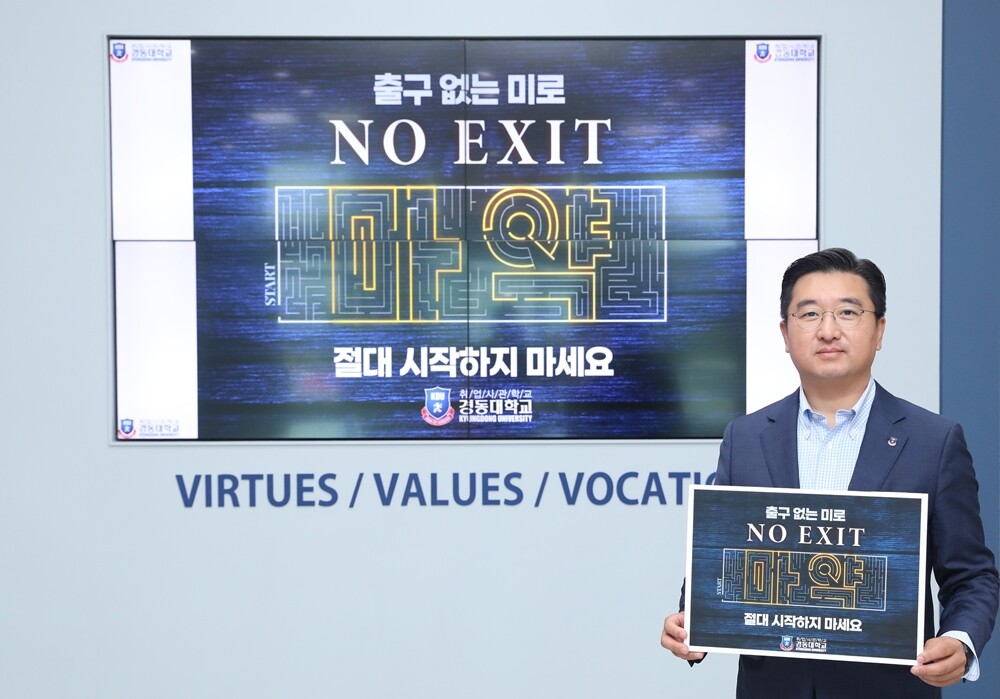 경동대 전성용 총장이 5일 ‘마약 예방 No Exit 캠페인’에 참여했다. 사진=경동대 제공 |