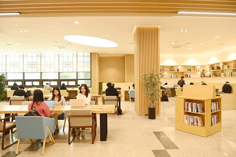 오픈라운지로 이름 붙인 공간은 책상 사이에 넉넉한 거리를 두고, 노트북용 전기 콘센트를 갖춘 창가 좌석을 마련해 쾌적하고 개방적인 카페형 학습공간으로 변신해 개강 이후 학생들의 호응을 얻고 있다.