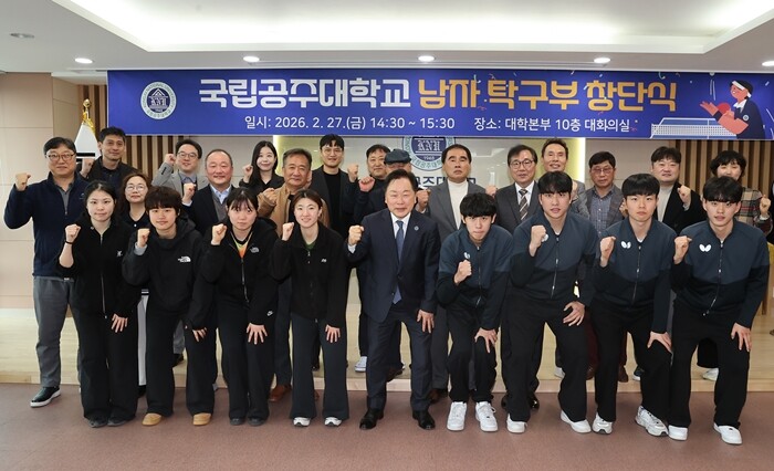 임경호 총장은 격려사를 통해 “남자 탁구부 창단은 우리 대학이 스포츠 명문으로 도약하는 중요한 이정표가 될 것”이라며 “국립공주대의 얼굴이라는 자부심을 갖고 매 경기 최선을 다해주길 바라며, 여러분의 정직한 땀방울이 결실을 맺을 수 있도록 학교가 든든한 버팀목이 되겠다”고 밝혔다.