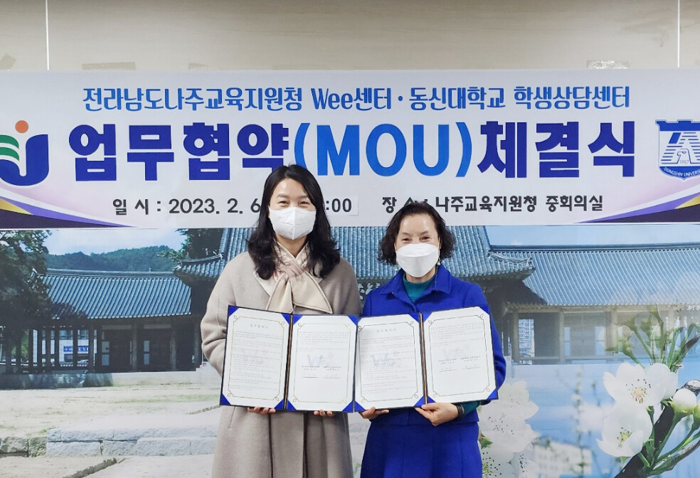 [대학저널 김진수 기자] 동신대학교는 학생상담센터가 지난 6일 나주wee센터와 ‘지역 위기 아동 및 청소년의 건강한 성장을 위한 심리상담 지원 업무협약’을 체결했다고 7일 밝혔다.