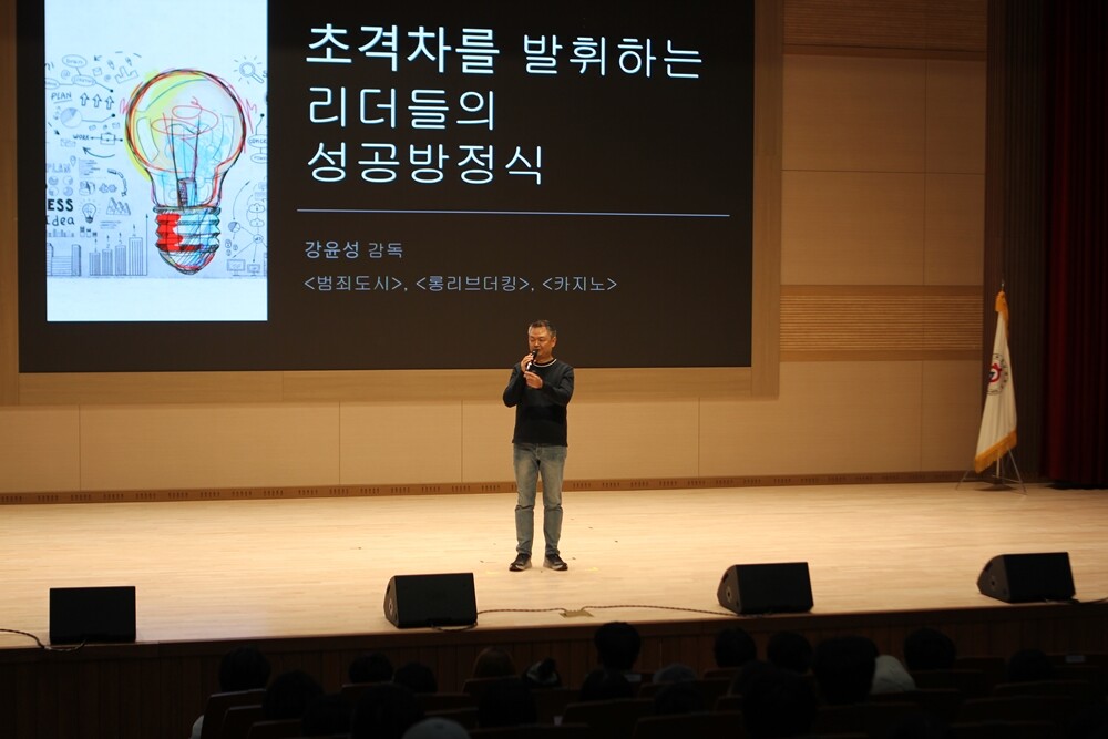 강 감독은 ‘초격차를 발휘하는 리더들의 성공방정식’이란 주제로 특강에서 평범한 이과생에서 영화감독으로 데뷔할 때까지의 도전 의식 가득했던 자신의 삶을 학생들에게 생생하게 전달했다.