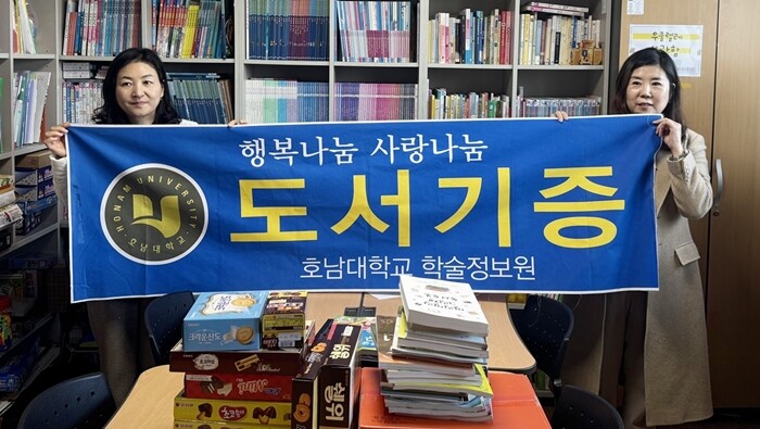 호남대 학술정보원이 2월 25일 광산구 선운지구 푸르름 공립 지역아동센터와 도토리 지역아동센터에 아동도서 69권을 기증하고 간식을 제공했다. 사진=호남대 제공 |