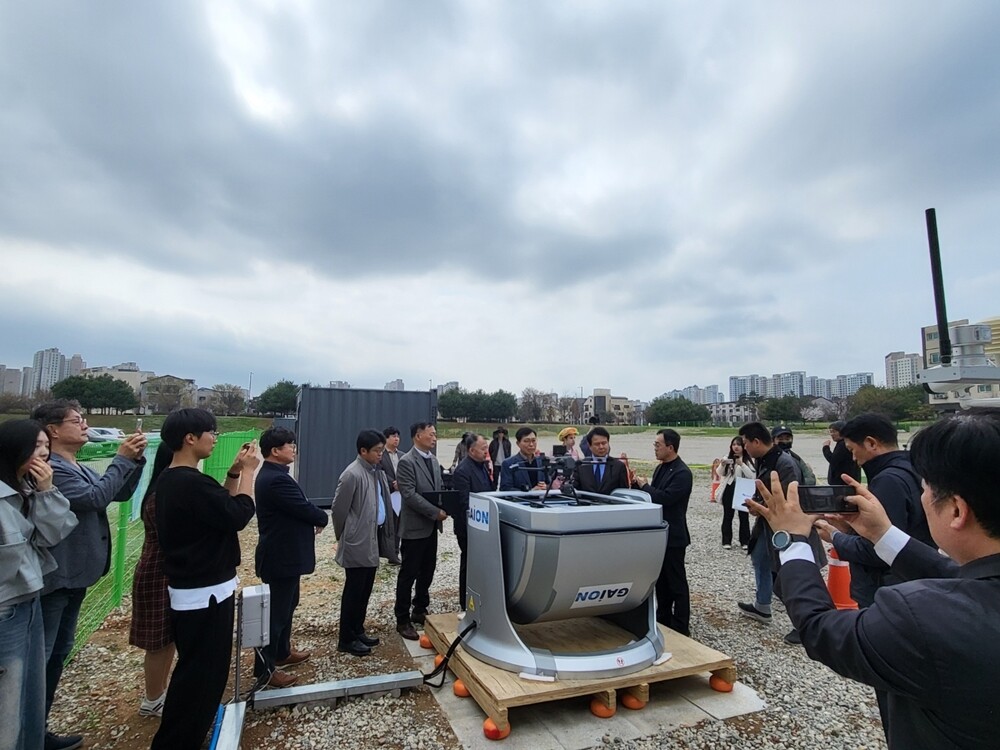 시연회에서 ㈜가이온은 고속 충전이 가능할 뿐 아니라 악천후에서도 운용이 가능한 Dock형 자동 비행 드론 솔루션으로 K01 Drone Docking Station을 소개했다.