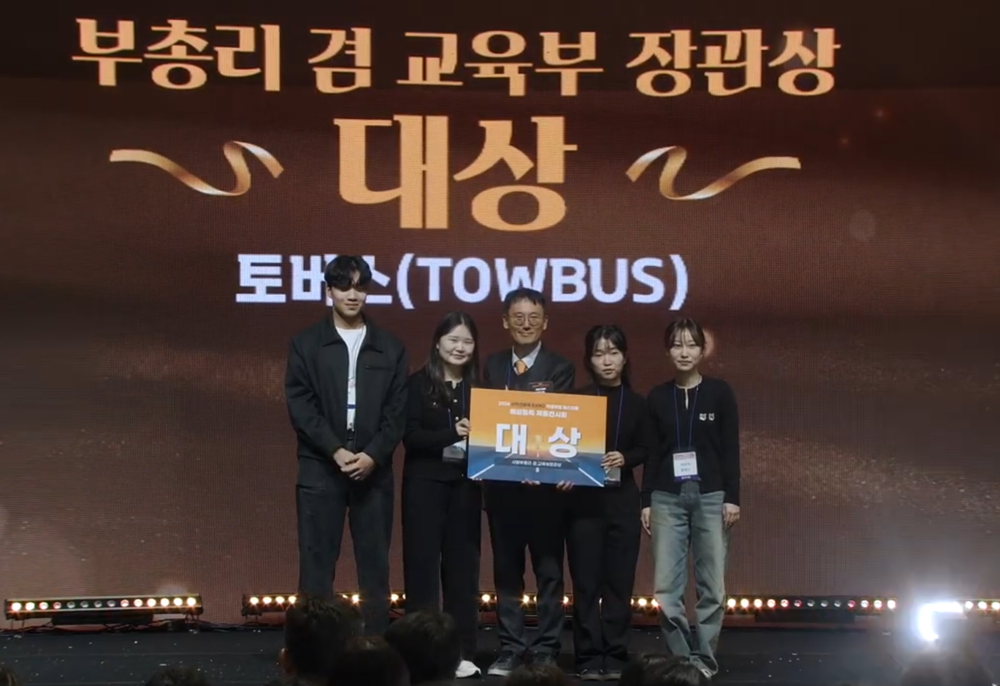 [대학저널 온종림 기자] 건국대학교 창업지원본부 KU창업클럽 소속 창업팀 ‘TOWBUS(토버스)’가 지난 6일부터 8일까지 부산 벡스코(BEXCO)에서 열린 ‘2024 학생창업유망팀 300+’ 예비트랙 부문에서 대상(사회부총리 겸 교육부장관상)을 수상했다.