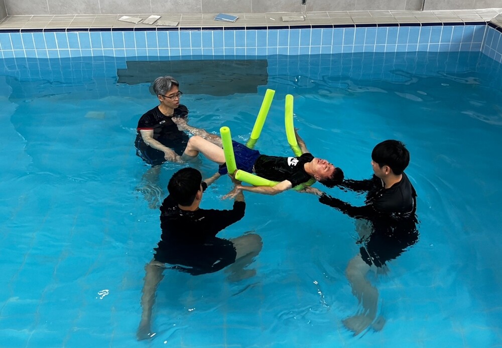 경북전문대 평생교육원이 장애학생을 대상으로 전공실습을 통한 수중 물리치료 봉사를 했다. 사진=경북전문대 제공 |