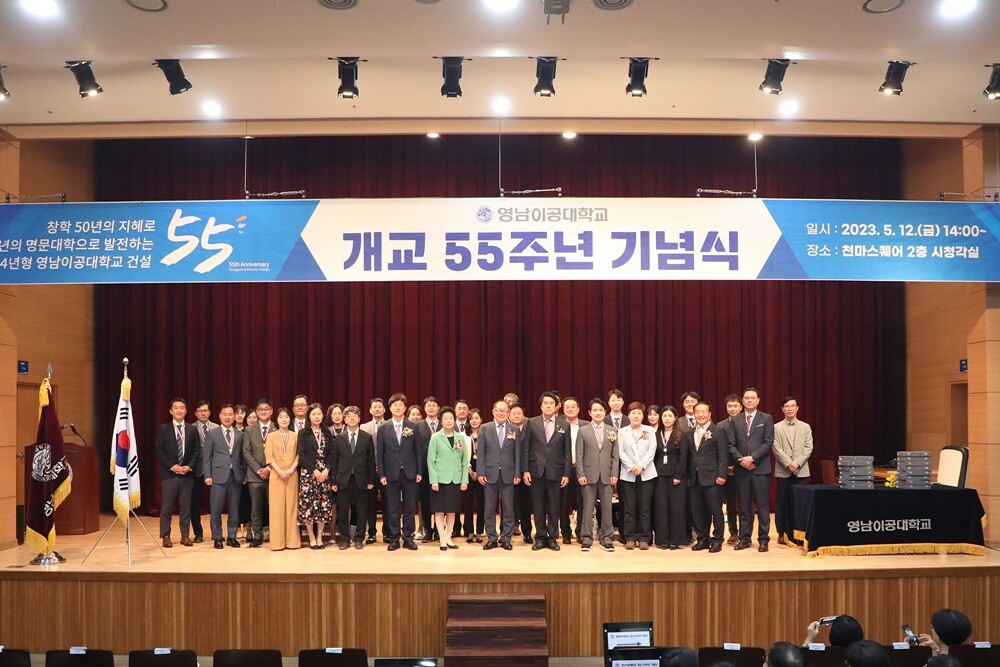 [대학저널 온종림 기자] 영남이공대학교가 지난 12일 천마스퀘어 2층 시청각실에서 개교 55주년 기념식을 개최했다.