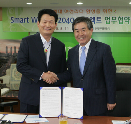 인하대(총장 이본수) 평생교육원(원장 홍영복)은 인천시(시장 송영길) 여성정책과에서 공모한 ‘인천광역시 차세대 여성지도자 양성사업:Smart Woman 2040 프로젝트’ 위탁 교육기관으로 선정되어, 지난 11일 ‘Smart Woman 2040 프로젝트’ 위탁교육 협약식을 가졌다.