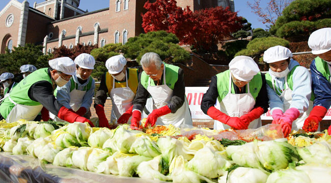 이날 행사에는 신일희 계명대 총장을 비롯해 계명대와 계명문화대학 학생·교직원, 다문화가정, 장애우 등 1000여 명이 참여해 총 7500여 포기의 김치를 담궜다. 배추 등 김장재료는 계명대와 계명문화대학 교직원들이 매월 봉급의 1%씩 기부한 성금으로 마련됐다.