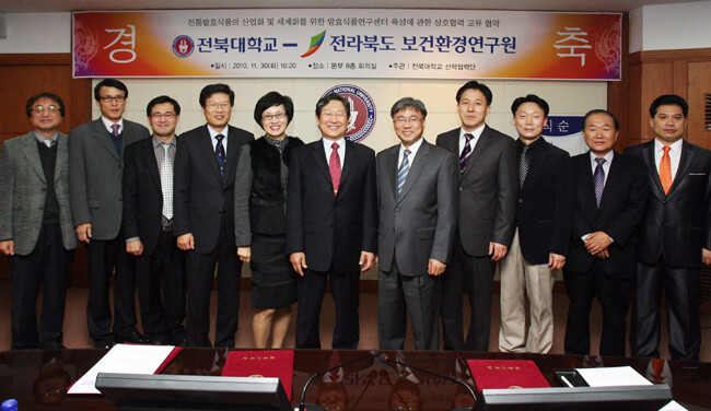 전북대(총장 서거석)와 전북보건환경연구원(원장 박철웅)은 전통발효식품 산업화 및 한식 세계화를 위해 30일 전북대 본부 8층 회의실에서 산학협력 협약식을 가졌다.