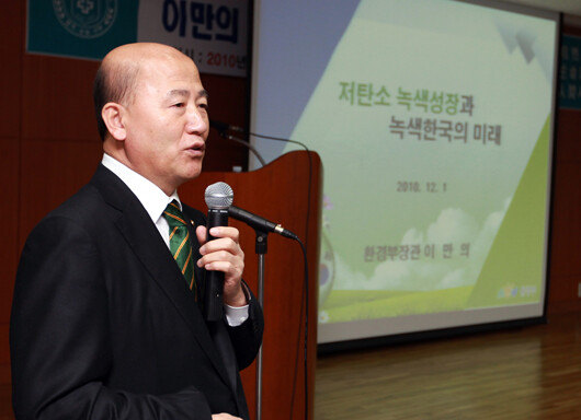 또한 이 장관은 "미래의 지구는 저탄소 산업 실현을 위한 기술 확보와 기후변화에 대응하는 환경정책에 국가의 경쟁력이 달려있다"며 "녹색경영을 통해 환경과 경제의 선순환구조를 형성할 수 있다"고 강조했다.
