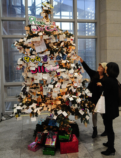 일명 ‘소망 트리’로 불리는 이 크리스마스 트리에는 꿈과 소망을 담은 다양한 사연들이 카드에 빼곡하게 적혀있다.