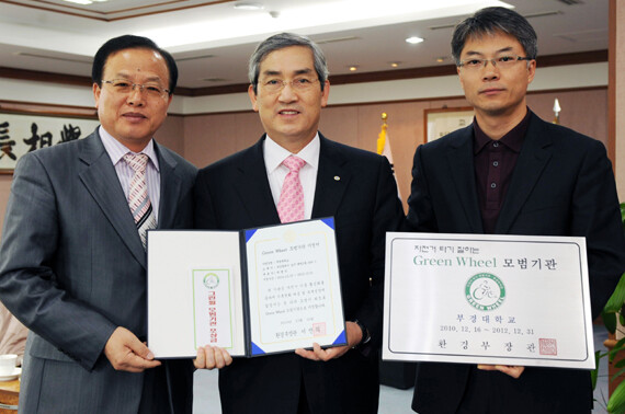 그린 휠 모범사업장 지정서는 저탄소 교통문화를 정착시키고 장려하기 위해 2년마다 자전거타기 문화를 확산시킨 기업과 기관에게 수여된다. 부경대는 부산, 울산, 경남 지역 대학으로는 유일하게 선정됐다.