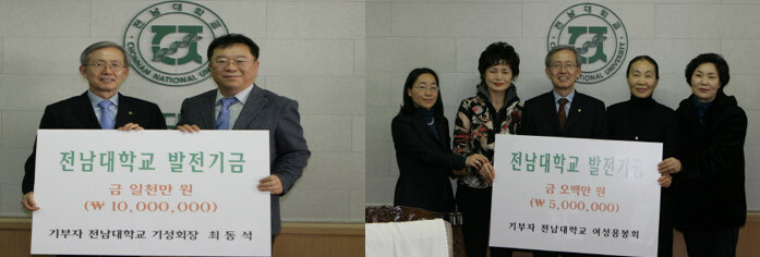 또한 같은 날 전남대 여성 동문들로 구성된 여성용봉회 역시 발전기금으로 500만 원을 쾌척했다. 발전기금 전달에는 김세장 회장(광주대 간호학과 학장)을 비롯해 김영 부회장(영진산업개발 대표이사), 송기희 부회장(광주MBC 부장), 장애신 부회장(전라남도 여수교육청 교육장), 주경자 이사(김제균 국회의원 배우자), 송진희 총무(동명회계법인 이사) 등 여성동문 6명이 참여했다.