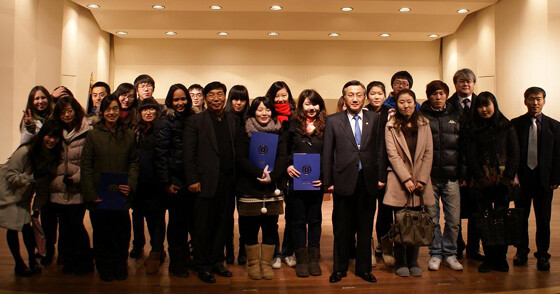 청주대(총장 김윤배) 한국어교육센터는 지난 19일 '2010학년도 제2학기 수료식'을 교내 예술대학 음악관 콘서트홀에서 개최했다.