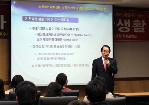 박 총장은 ‘도전과 성취’란 주제로 90분 동안 진행된 특강에서 ‘원대한 희망은 위대한 사람을 만든다’는 인생의 모토를 학생들에게 소개하며 “대학 생활을 보다 큰 꿈을 이뤄나갈 수 있는 미래를 위한 씨앗으로 삼고, 보람 있는 대학 생활을 보내길 바란다”고 당부했다.
