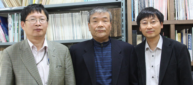 물리학과 임인택, 김재률, 주경광 교수(사진 왼쪽부터 순서대로)팀은 최근 서울대와 함께 전남 영광 원자력발전소 인근에 국내 최초의 중성미자 검출시설을 완공하고 우주생성의 비밀의 열쇠를 쥐고 있는 마지막 중성미자 변환상수 측정에 돌입한다고 22일 밝혔다.
