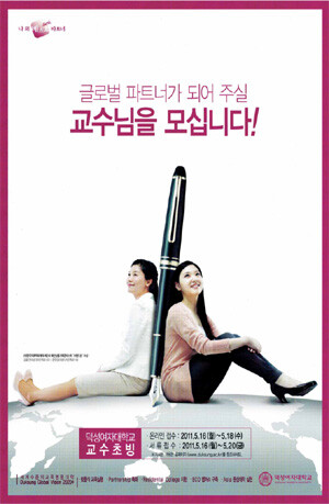 이외에도 동덕여대는 "생각의 길을 내다"라는 슬로건으로, 덕성여대는 "글로벌 파트너가 되어 주실 교수님을 모십니다!"라는 슬로건으로 강조하며 교수초빙 광고를 각각 게재했다.