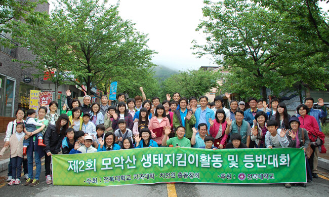 전북대 치대·치전원 총동창회(회장 임익준)는 지난 10일 모악산 일원에서 생태 지킴이 활동을 실천했다. 이날 행사에는 임익준 회장을 비롯해 김정기 치의학전문대학원장, 문진균 전북치과신협이사장 등 65명이 참석했다. 이들은 모악산을 등반하며 등산로 주변의 오물을 수거, 자연 사랑을 실천했다. 또한 함께 참여한 중고생 자녀들에게는 봉사활동 점수가 부여됐고 6명에게는 전북대 총장상도 주어졌다.