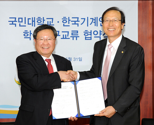 국민대(총장 이성우)와 한국기계연구원(원장 이상천)은 지난 5월 31일 국민대 본부관에서 '기계·자동차·플랜트·로봇·MEMS 및 나노분야 기술발전과 전문인력 양성'을 위한 MOU를 체결했다.
