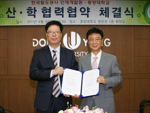 동양대(총장 최성해)는 지난 9일 교내에서 한국철도공사 인재개발원(원장 이기택)과 산학협력 협약을 체결했다.