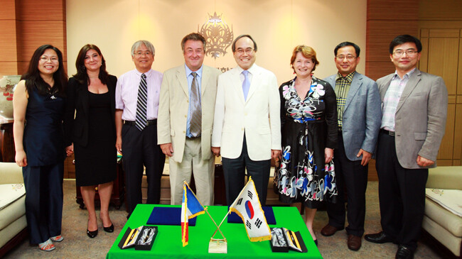 고다르 총장은 "전북대의 많은 지원으로 지난 1월 개교기념행사를 치르며 프랑스 주재 한국대사를 초청할 수 있었고 한국어 강좌를 개설할 수 있어 매우 감사드린다"면서 "특히 전북대가 시행하는 문화체험 프로그램인 '필링 코리아'를 통해 마른라발레대 학생들이 매우 감동을 받았기에 이를 벤치마킹해 앞으로 '필링 프랑스' 프로그램을 시행하고자 한다"고 말했다.