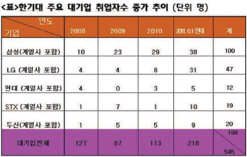 대기업 취업률 40% 육박...지난해보다 105명(2배) 증가