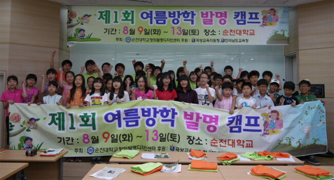 순천대 창의발명디자인센터(지도교수 전영국)는 지난 8월 9일부터 13일까지 곡성교육지원청의 위탁을 받아 Fun 발명캠프를 운영했다.