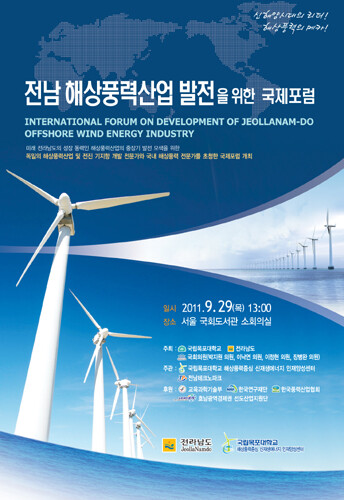 '전남 해상풍력산업 발전을 위한 국제포럼'은 박지원 국회의원, 이낙연 국회의원, 장병완 국회의원, 이정현 국회의원이 해상풍력산업 발전을 위해 전라남도와 함께 주최했다.