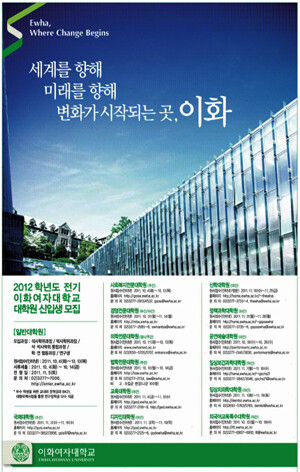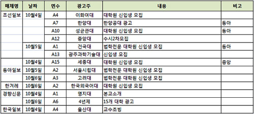 이화여대, 성균관대, 세종대, 한국외대는 대학원 신입생 모집 광고를 게재했으며 명지대는 본교를 소개하는 광고를 냈다.