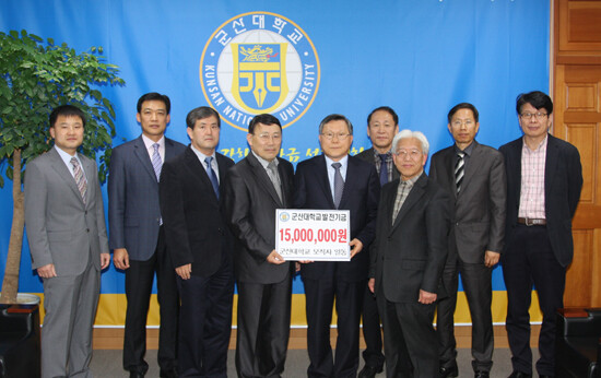 군산대 주요 보직자 일동이 대학발전기금 1500만 원을 기부했다.