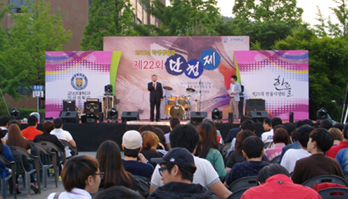 23일 군산대에 따르면 단청제는 학생기숙사인 생활관을 공개해 관생들의 자긍심을 높이고 다양한 프로그램을 마련해 지역민의 참여를 유도, 대학과 지역민과의 일체감을 조성하는 축제다. 올해는 동아리공연, 장기자랑, 댄스공연, 동전게임, 커플게임, 복불복 등 관생들의 호응을 얻을 수 있는 다양한 프로그램을 진행했다. 초대가수로는 슈퍼스타 K의 김지수가 출연해 눈길을 끌었다.