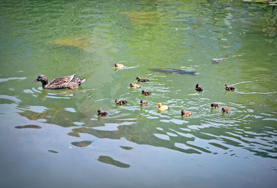 강릉원주대(총장 전방욱) 해람지에 오리 가족이 탄생해 화제다. 4마리 청둥오리가 노닐던 해람지에 갓 부화한 청둥오리 새끼 13마리가 아장아장 어미를 따라 행진을 하며 교직원들의 귀여움을 독차지하고 있는 것. 강릉원주대 관계자는 "다갈색 몸에 검은색과 노랑색이 섞인 오리는 얼마 전부터 어미 오리가 야생 고양이의 위험을 무릅쓰며 부화에 성공해 기쁨이 더 크다"고 말하기도. 사진은 청둥오리 가족의 모습.