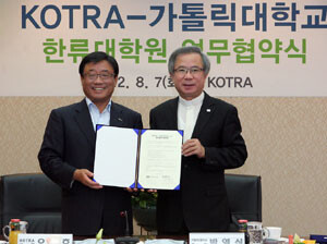 오영호 사장은 “문화 한류를 경제 한류로 발전시킬 수 있도록 학문적 연구와 인력 양성에 힘쓰고 있는 가톨릭대와 함께 실효성 있는 결과를 낼 수 있도록 최선을 다하겠다”고 말했다.