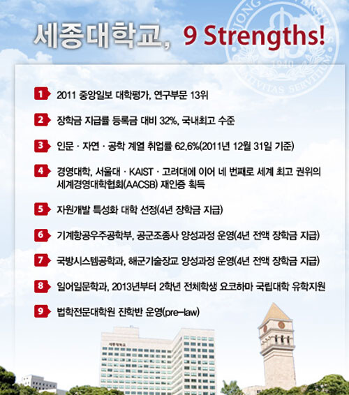 정부재정지원제한대학에 선정된 세종대(총장 신구)가 정부의 평가 결과에 대해 해명하며 '2011년 중앙일보 대학평가 연구부문 13위' 등의 우수성을 기반 삼아 명문사학으로 더욱 발전하겠다는 입장을 밝혔다.