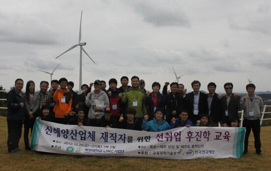 이번 교육은 제주와 목포를 오가는 선상에서 후진학 교육 개념의 소개, 신해양시대의 과제와 전망, 국내해상풍력 추진현황 등 강의가 진행됐고 제주도에서는 한국에너지기술연구소의 해상풍력단지 ・한신에너지 풍력단지를 견학했다.
