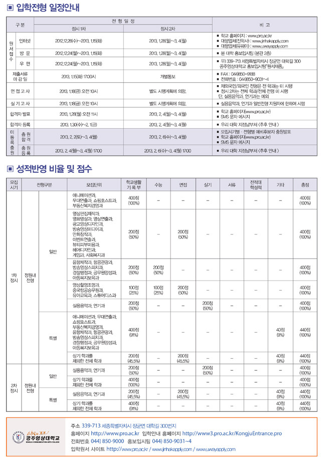 공주영상대는 2013년 개교 20주년을 맞아 특별위원회를 구성해 대대적인 홍보와 행사를 추진하고 있다. 과거 20년의 발자취를 되돌아보며, 대학의 비전을 달성하기 위해 ▲우수 신입생 장학특전 ▲현장 실무형 인재양성 교육과정 개발 ▲남·여 기숙사 시설 확충 ▲E-러닝교육 체제 구축 ▲산학협력 지원 강화 등 다방면으로 노력하고 있다.