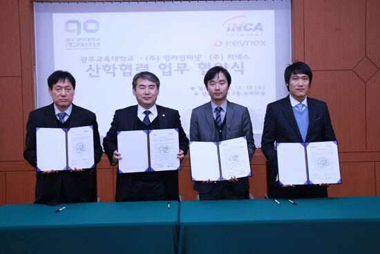 광주교대는 12일 본관 소회의실에서 ㈜잉카인터넷(대표이사 주영흠), (주)키넥스(대표이사 최백수)와 산학협력을 통해 광주교대 교직원과 예비교사들에게 보안교육과 더불어 개인정보 유출을 막을 수 있는 양해각서를 체결했다고 밝혔다.