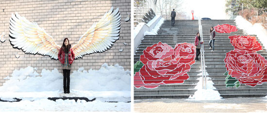 본관과 한울관 외벽에는 날개 그림의 포토존이 마련됐으며 본관과 대학원관 뒤편 중앙계단에는 원주시 시화(市花)인 장미그림 포토존이 마련됐다. 특히 이번 작업은 상지대 디자인학부 하용훈 교수의 지도 하에 전공학생 15명이 재능 기부를 했다는 점에서 더욱 의미가 있는 것으로 평가되고 있다.
