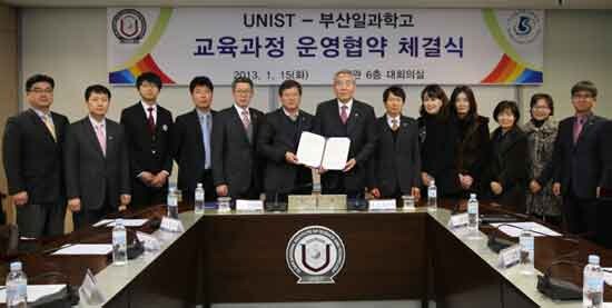 UNIST는 오는 15일 부산일과학고(교장 진병화)와 대학본부 6층 대회의실에서 과학영재 조기발굴과 육성을 위해 교육과정 운영에 관한 협약을 체결한다.