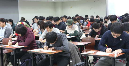 전통의 명문사학, 숭실대 편입학을 위한 열기가 뜨겁다. 이를 반영하듯이 숭실대 편입학전형 경쟁률은 188명 모집에 5682명이 지원, 30.22:1을 기록했다. 사진은 18일 오전 숭실대에서 수험생들이 편입학 고사를 치르고 있는 모습.