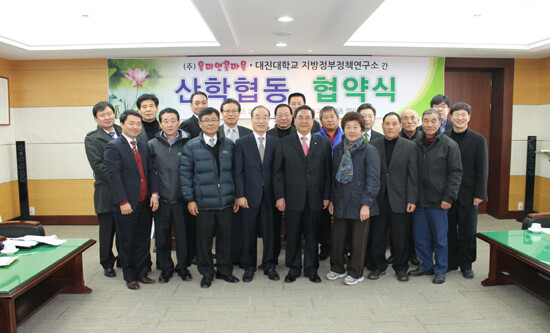 이번 협약식에는 김국보 부총장 겸 산학협력단장과 지방정부정책연구소 소장인 김정완 교수외 연구소 소속 교수 2명, (주)울미연꽃마을 이한강 사장과 공동대표를 맡고 있는 이한무 마을이장을 비롯한 마을관계자 15명이 참석했다.