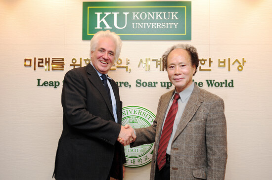 한편 이에 앞서 지난 3일 방한한 핀폴드 교수는 4일 송희영 건국대 총장과 만나 건국대와의 연구교류 협력 방안을 논의했다. 또 5일에는 국제과학비즈니스벨트에 자리잡은 기초과학분야 국가연구기관인 기초과학연구원(IBS)을 방문, 오세정 원장과 면담을 갖고 한국과의 공동연구 방안을 협의했다.