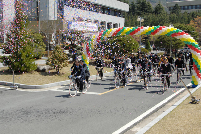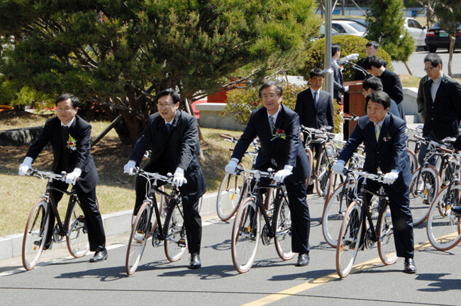 창원대학교(총장 이찬규)가 ‘교직원 공영자전거 발대식 및 SOUL 자전거 전달식’을 개최해 화제다. 경남지역 대학 중 유일하게 환경부의 ‘그린휠 모범기관’에 지정돼 있는 창원대가 대학 구성원들이 이용할 자전거 100대를 추가로 확보했기 때문이다. 창원대는 ‘대학 SOUL 자전거 지원 사업’에 선정돼 12일 대학 본관 앞에서 이찬규 총장, 강희성 한국대학사회봉사협의회장, 신관수 기아자동차 팀장 등이 참석한 가운데 공영자전거 발대식 및 SOUL 자전거 전달식을 가졌다.