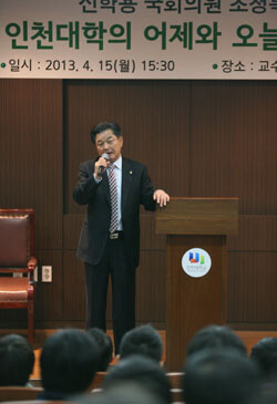 신 위원장은 "대학의 역사가 1200년에 이르지만 200여 년 전 독일의 홈볼트대학이 쌍방형 세미나를 시작하고 창의적 사고와 연구중심 교육을 통해 새로운 학풍을 일으켜, 독일의 국가 경쟁력을 높이고 교육과 연구가 하나되는 지식의 전당으로 발전한 것처럼 인천대가 인천시의 어려운 재정상황과 아시안 게임 등 산적된 문제들을 해결해 나가는데 중심적인 역할을 해야 된다"고 강조했다.