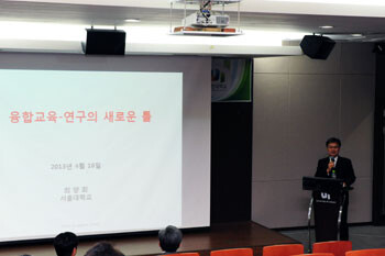 최 교수는 강연에서 융합의 대표사례인 'Smartphone, 전자책, 송도의 U-city’ 등을 소개하고, '왜 융합을 하는가?' , '융합이란 무엇이며', '융합의 조건은 무엇인지'를 설명했다. 또한 융합을 전문으로 다루는 세계최초 전문대학원인 서울대 융합과학기술대학원의 운영 현황과 융합교과과정의 예를 설명하며, 학문간 융합은 신지식, 신학문을 창조하기 위한 패러다임의 전환이라고 강조했다.