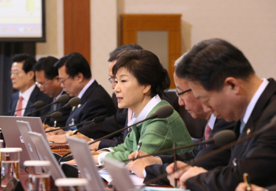 박근혜 대통령은 지난 23일 청와대에서 국무회의를 주재하고 "앞으로 교과서 외의 것은 절대 출제하지 않겠다는 원칙이 지켜지기 위해서는 교과서가 더욱 발전을 해야 한다고 생각한다"면서 "우리가 지향하는 교육목표가 달성이 되려면 평가가 대단히 중요하다"고 말했다.