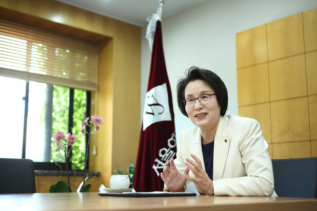 “서울여대에 20년 간 재직했지만 그동안 교수님들과 가까이 대화할 시간이 없었다. 학교 상황을 파악하려면 구성원들을 모두 만나고 이를 바탕으로 정책에 반영하는 것이 좋겠다는 생각이다. 현재까지 33개 학과 교수 중 약 70% 정도를 만났다. 직원 선생님들도 곧 만날 계획이다. 교내에 있는 사택 가든으로 초대해 제가 직접 서빙도 하고 대접할 생각이다. 서울여대 CEO로서 자리에만 앉아있기보다는 실천하는 CEO가 되어야겠다는 생각을 하고 있다. 구성원들과 마음이 합해지면 합리적으로 학교를 운영할 수 있다고 생각한다.”