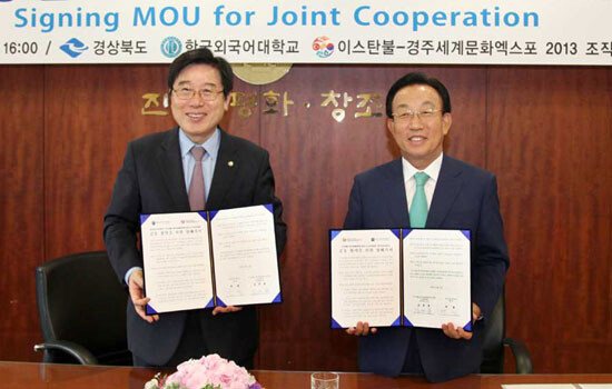 한국외대는 24일 한국외대 이덕선 회의실에서 '이스탄불-경주세계문화엑스포 2013'의 공동협력을 위한 양해각서를 체결했다. 이날 양해각서 체결에 따라 한국외대 터키어과 6명은 오는 9월 터키로 파견된다.